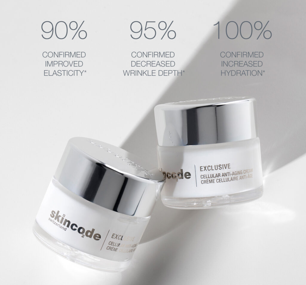 At Skincode, we constantly strive to develop the most innovative and transformative skincare products that continuously target signs of aging and provide long lasting improvements to the skin’s moisture level, elasticity, smoothness and wrinkles over time. To reinforce our commitment to provide advanced cellular anti-aging skincare solutions, we clinically tested our bestselling Exclusive products to obtain scientific proof of their short and long-term efficacy.