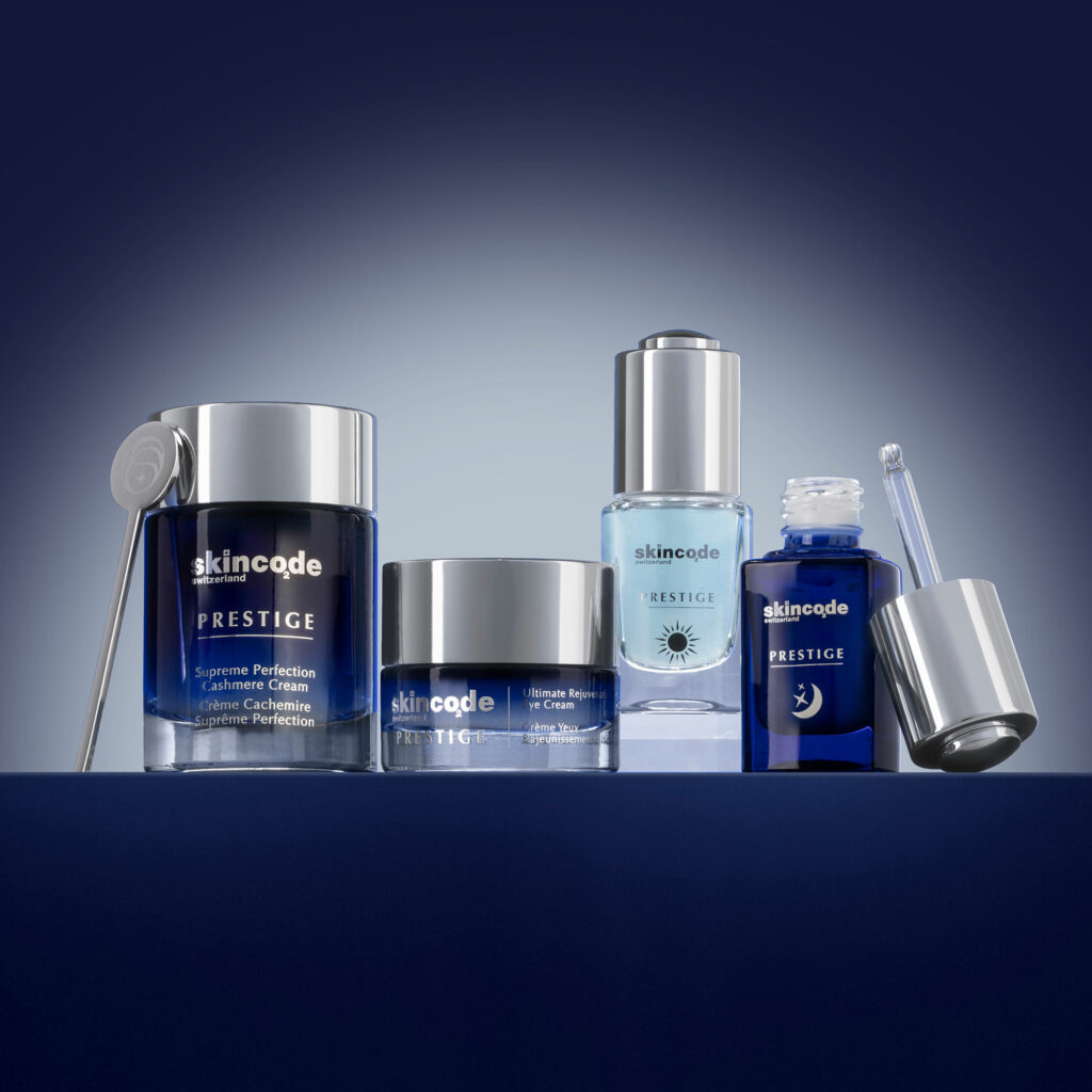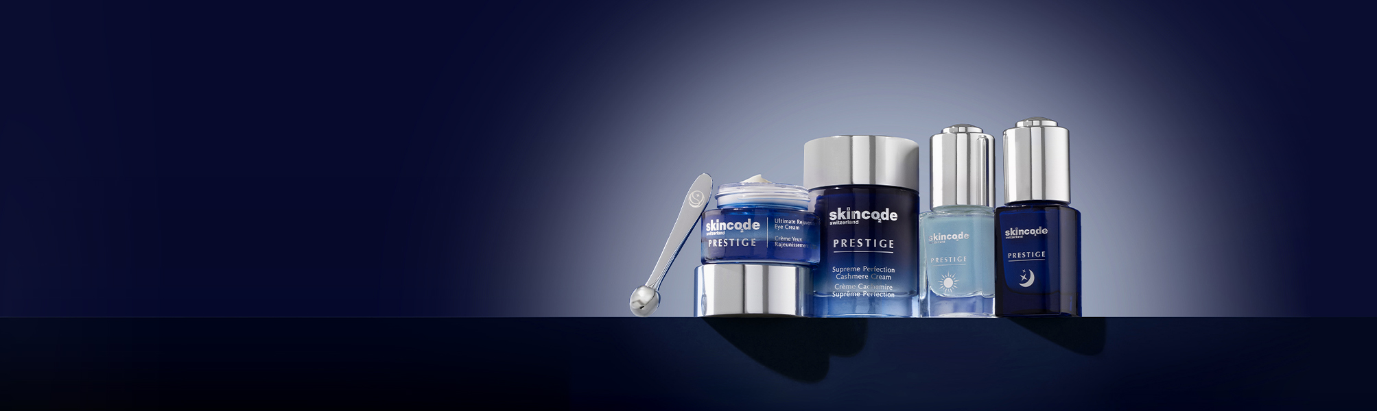 The Skincode PRESTIGE collection unveils a new 360° approach to visibly prevent and help erase all signs of aging. Each product has been carefully created in a renowned Swiss laboratory with the latest research and most advanced technologies. Selecting only the purest powerful active ingredients of superior cosmeceutical quality, at clinically tested concentrations to provide an ultra-luxurious experience for the skin and the senses.