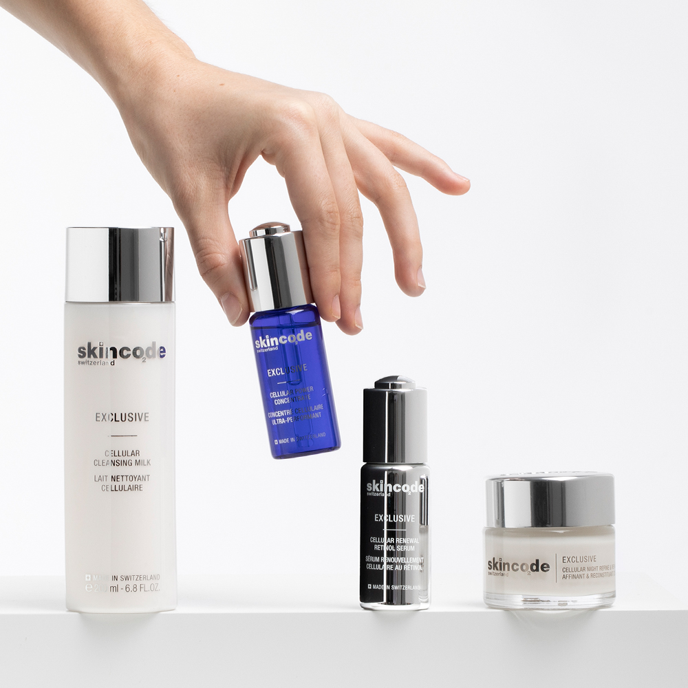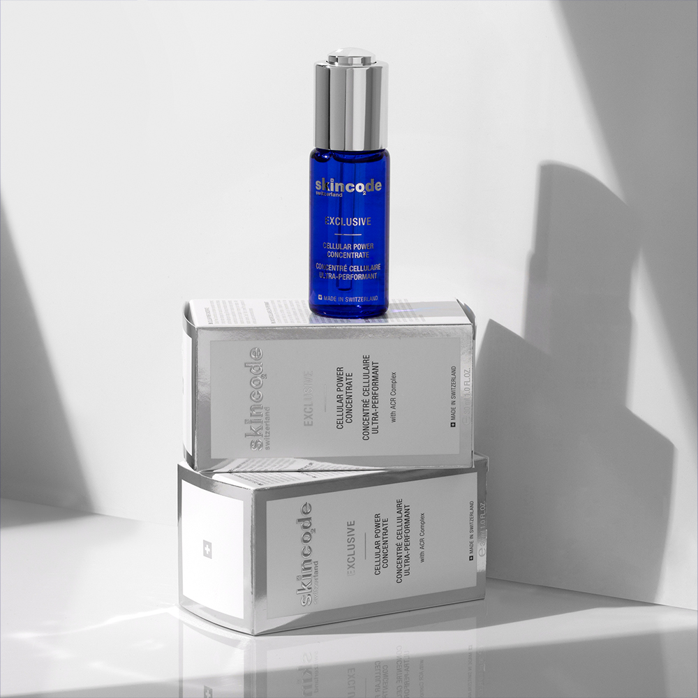 The Cellular Power Concentrate is part of Skincode's Exclusive collection. Skincode Exclusive is a luxury-oriented, revolutionary Swiss cellular anti-aging skincare line designed to address the specific needs of mature skin. The powerful anti-aging treatments speed up the cell renewal process and increase collagen production, which slow with age.